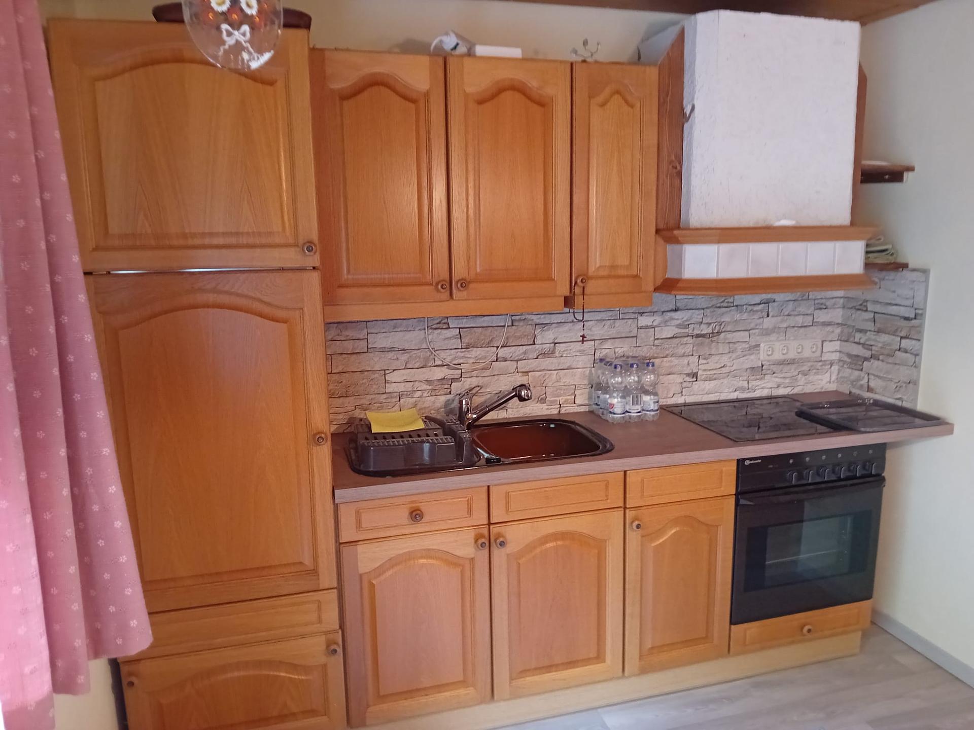 Ferienwohnung mit Wohnzimmer und Küchenzeile, Schlafzimmer und Badezimmer.Anreiseinformation