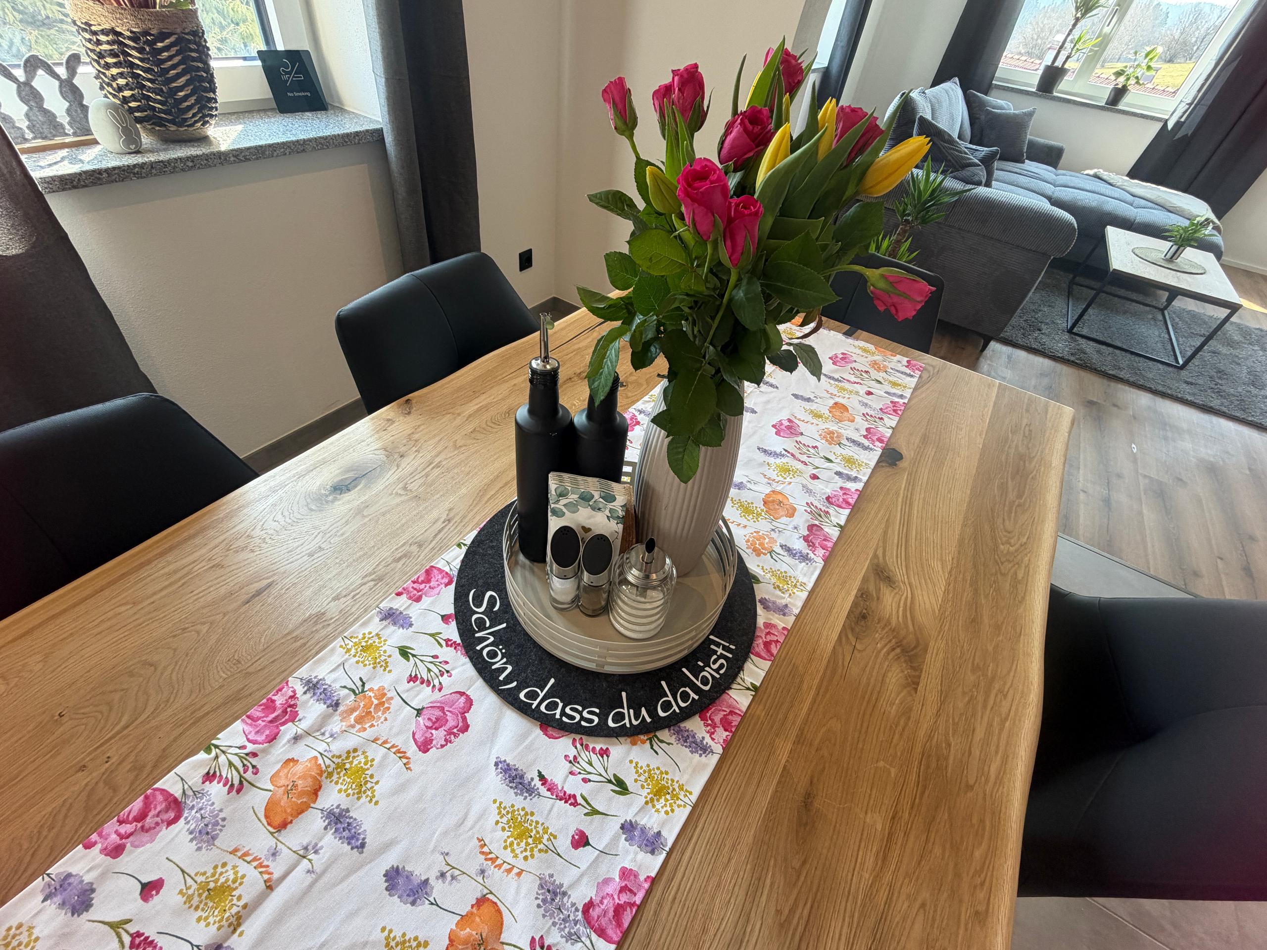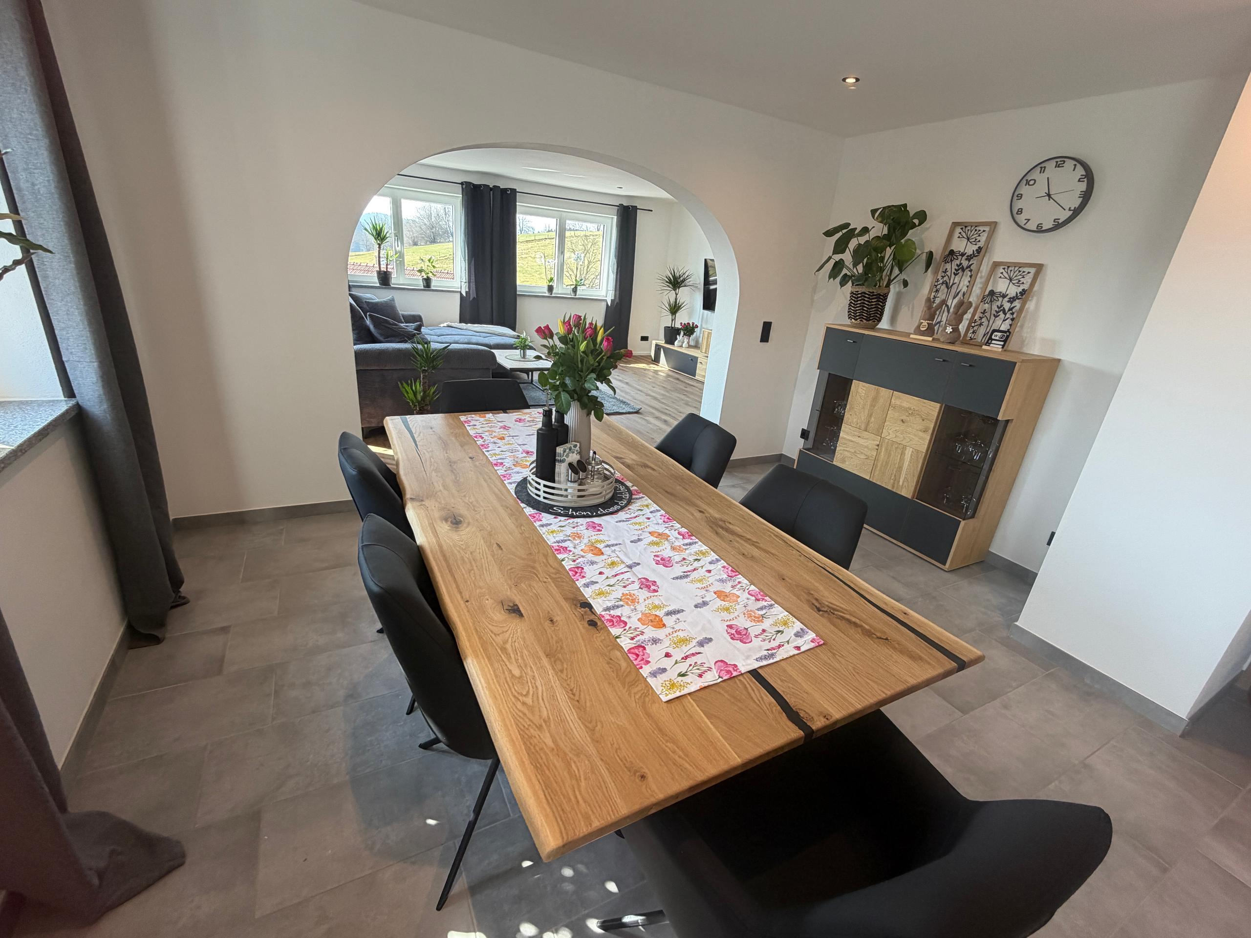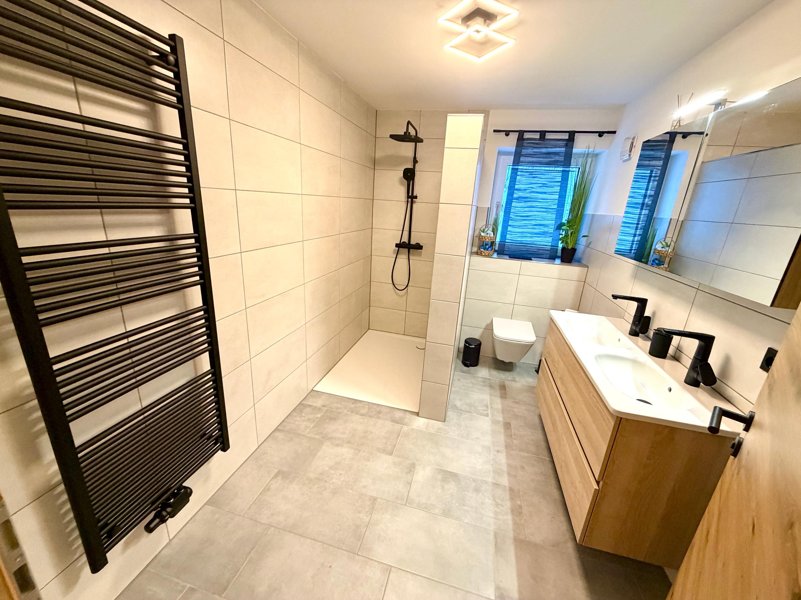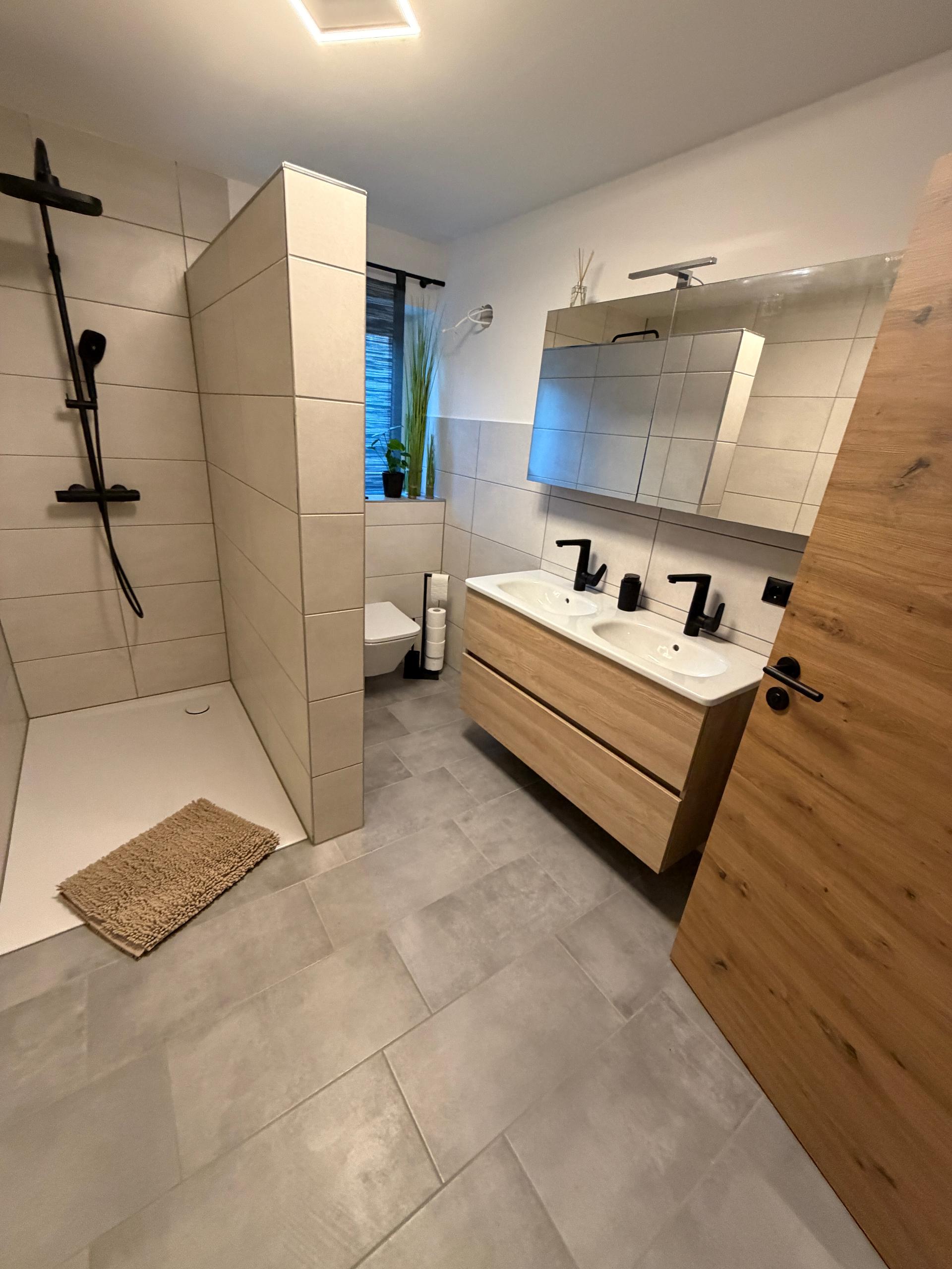 Die moderne Ferienwohnung im Erdgeschoss verfügt über eine Wohnfläche von ca. 90 qm und ist für bis zu vier Personen geeignet. Sie bietet zwei Schlafzimmer, eines davon mit Doppelbett und TV, sowie ein weiteres Schlafzimmer mit zwei Einzelbetten. Der Wohnbereich mit einem gemütlichen Sofa und einem TV ist offen zur Küche und zum Essbereich gestaltet, wodurch ein heller und einladender Raum entsteht. Das Badezimmer verfügt über eine Dusche und ein WC. Die Wohnung eignet sich besonders für Familien oder Paare, die großzügiges Wohnen auf einer Ebene schätzen.Kategoriebilder: