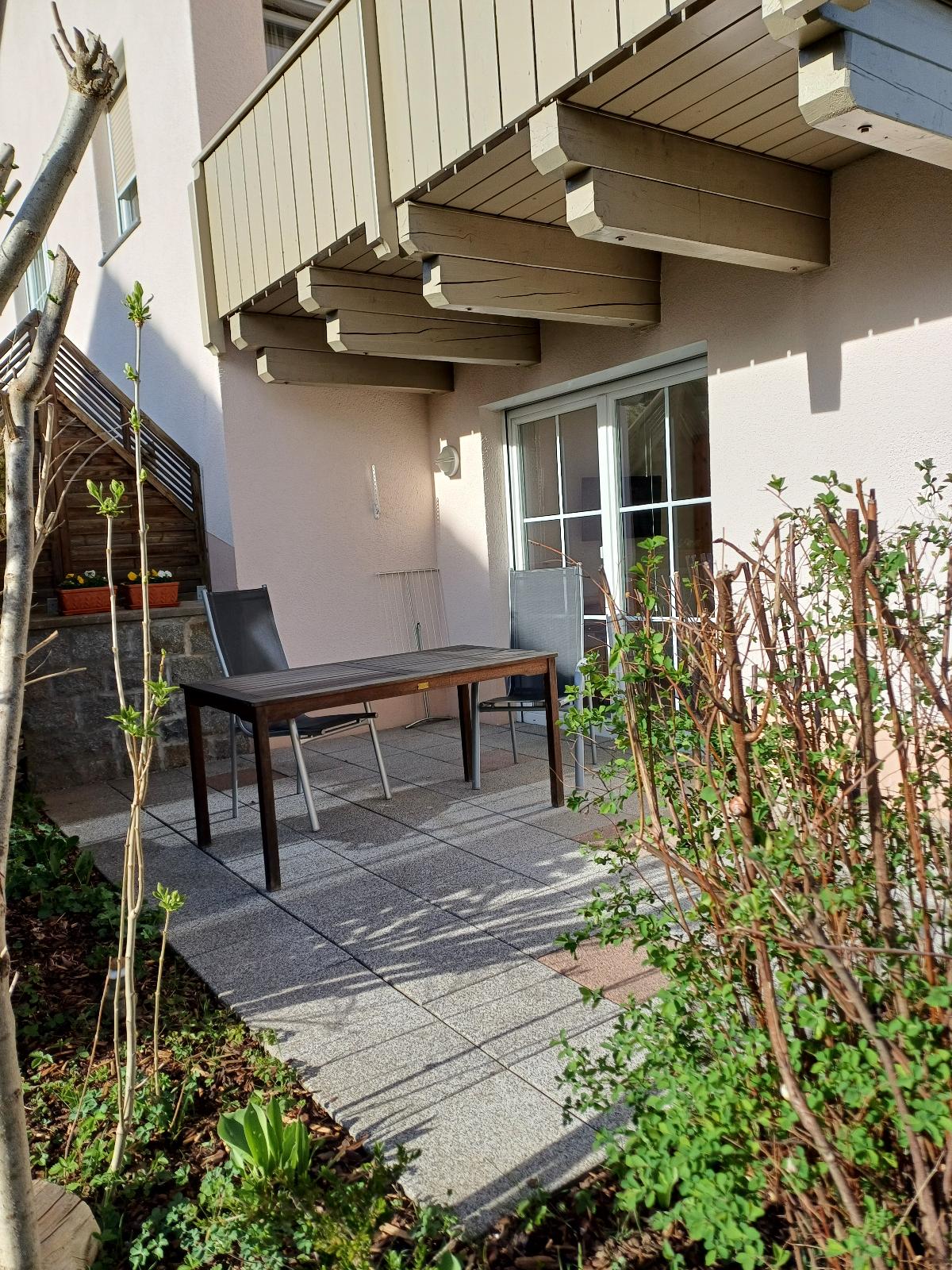 Freundlich, sonniges im EG liegendes Appartement mit schöner grossen Gartenterrasse und eigenen Eingang, sowie Nähe zum Zentrum, Freibad und kostenloser Autostellplatz.